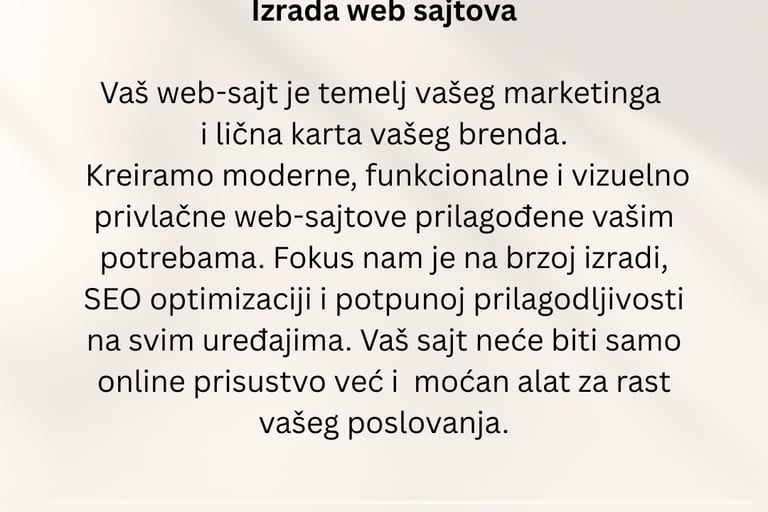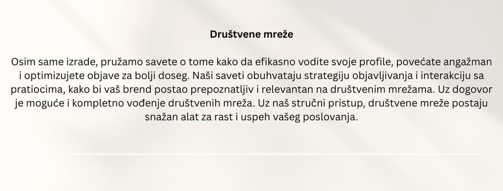 Digitalni marketing pruža priliku da se vaša poruka plasira pravim ljudima, na pravom mestu i u pravo vreme. Od društvenih mreža do SEO optimizacije i ciljano plasiranih oglasa, on nudi merljive rezultate i omogućava konstantno prilagođavanje strategije kako bi se ostvario maksimalni efekat.
